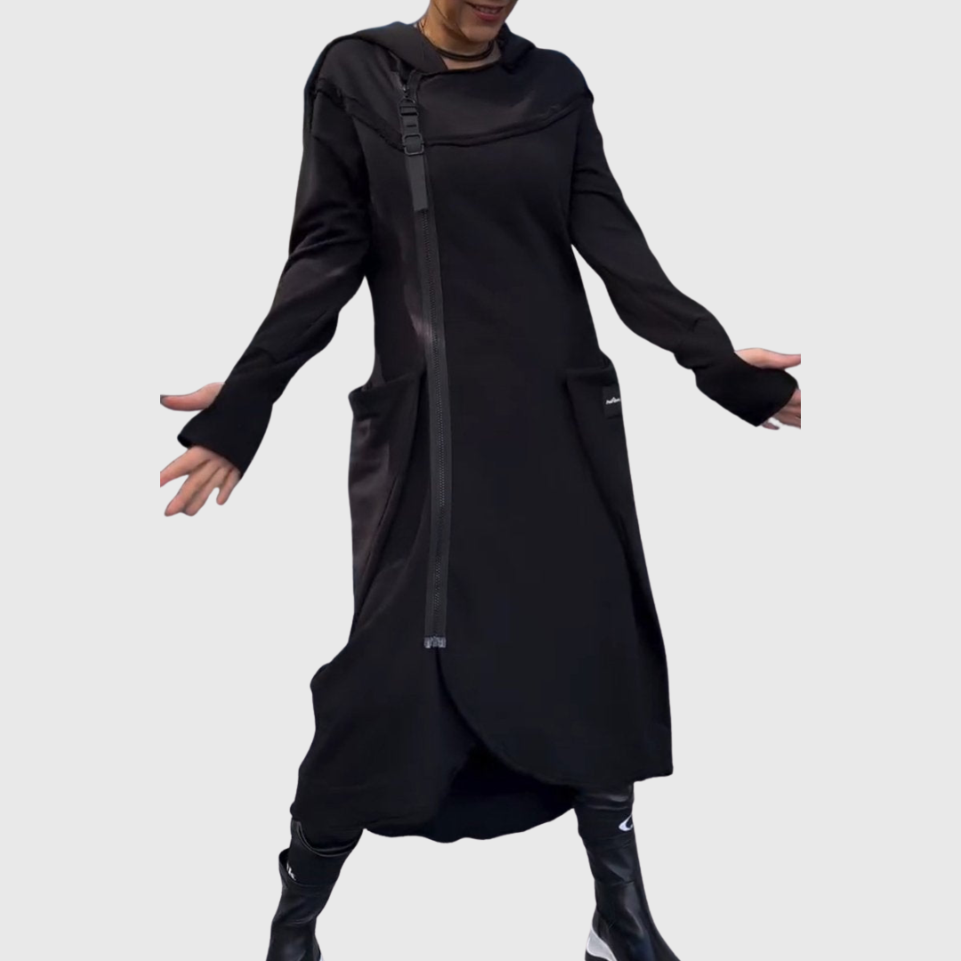 Bunda Adriana je ideálna voľba pre ženy, ktoré hľadajú originálny dizajn a funkčný kúsok na každé počasie. Vďaka asymetrickému zipsu, praktickej kapucni a pohodlnému strihu sa stane nepostrádateľnou súčasťou vašej garderóby. Úplne spája uvoľnený štýl s moderným nádychom – či už do mesta, na cestu do práce alebo na voľný čas.